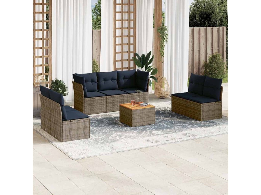 Multidom 8-dielna záhradná súprava pohoviek s vankúšmi sivá polyratanová