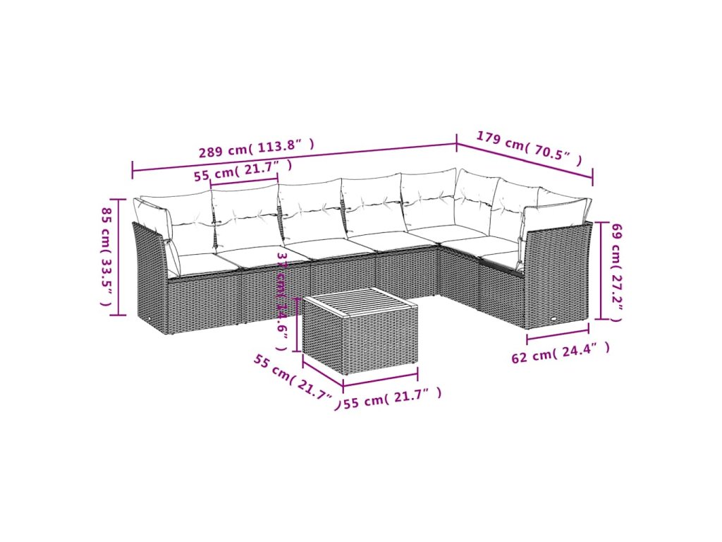 Multidom 8-dielna záhradná súprava pohoviek s vankúšmi sivá polyratanová