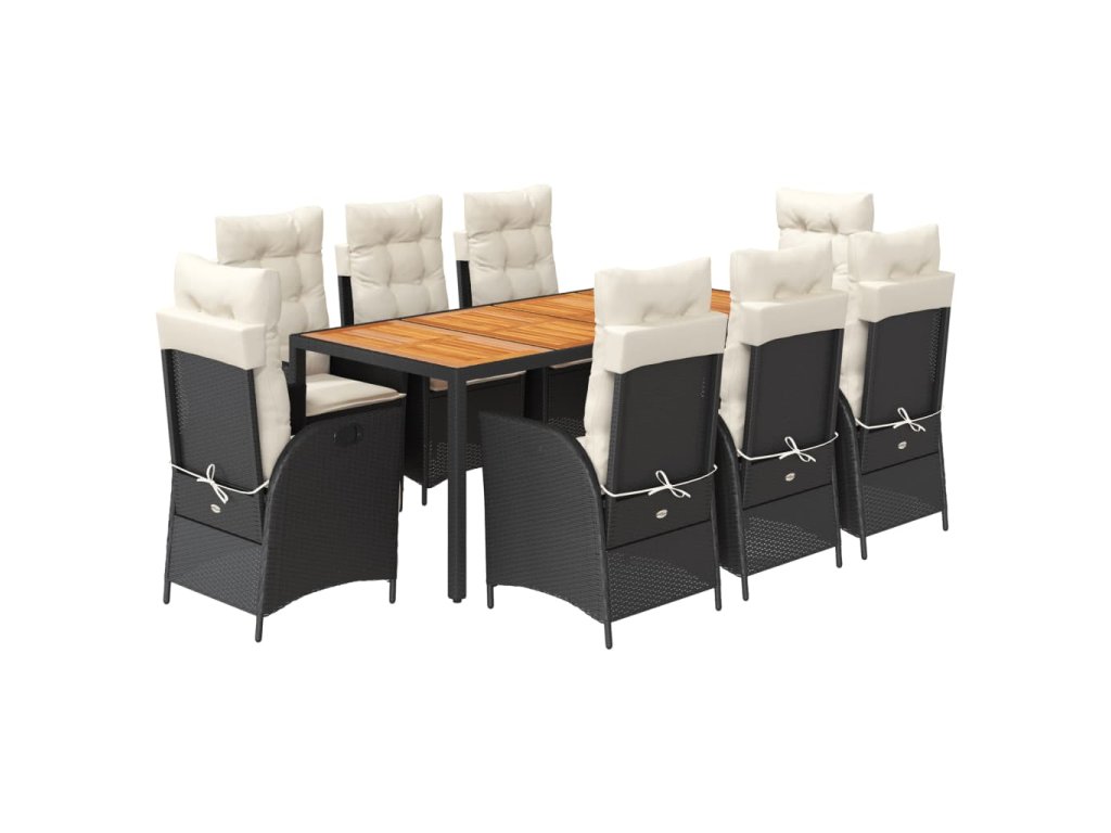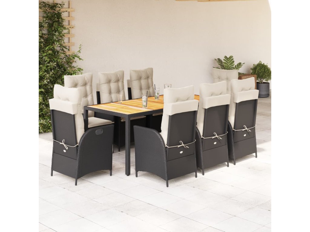Multidom 9-dielna záhradná jedálenská sada s vankúšmi čierna polyratan