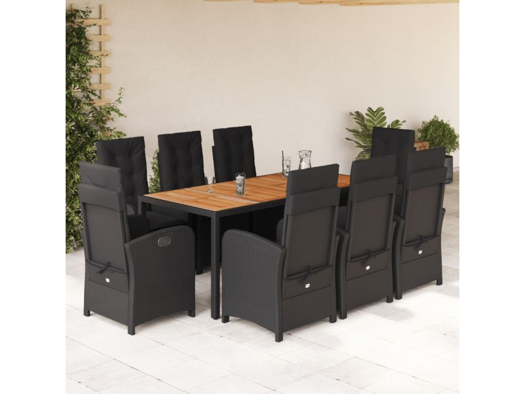 Multidom 9-dielna záhradná jedálenská sada s vankúšmi čierna polyratan