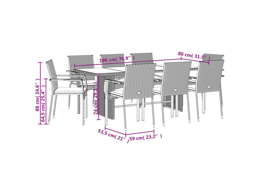 Multidom 9-dielna záhradná jedálenská sada s vankúšmi čierna polyratan