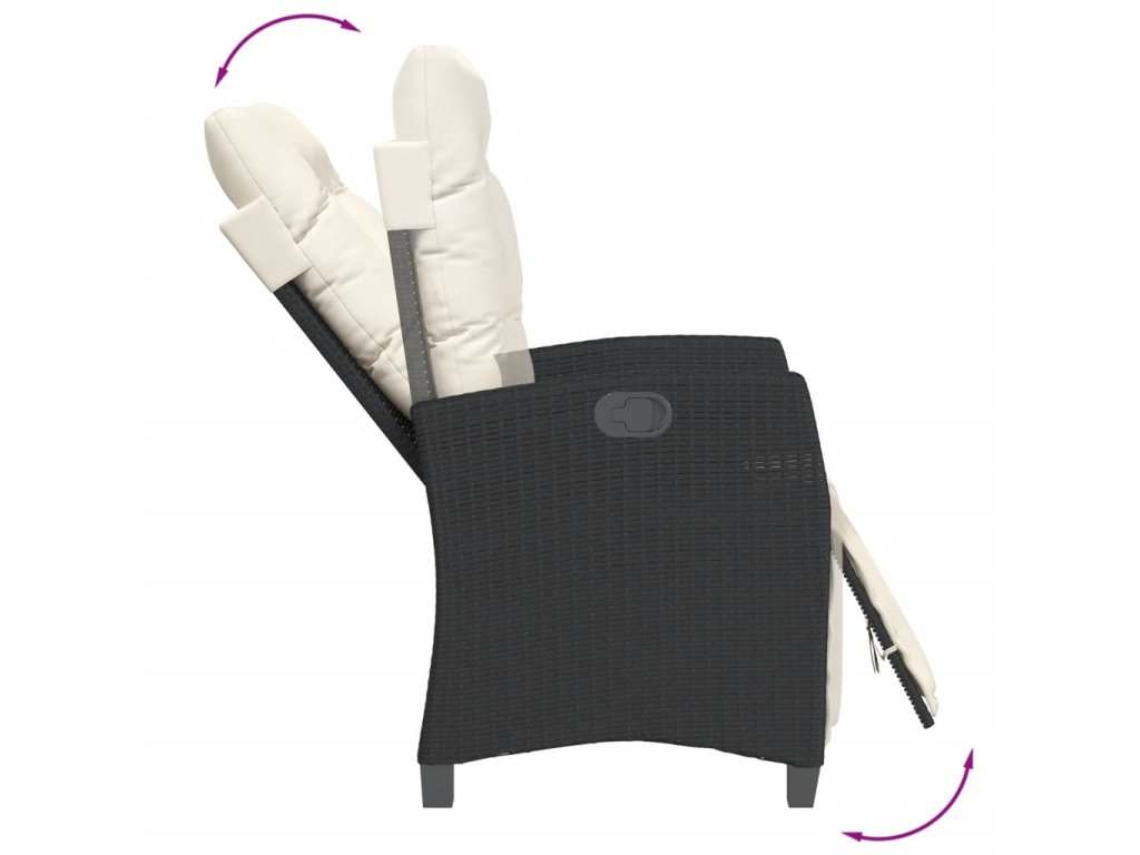 - Nastaviteľné operadlo a podnožka: Toto záhradné sedadlo má rukoväť. Opierku chrbta a podnožku môžete nastaviť do ľubovoľnej polohy zatiahnutím za rukoväť a rýchlo ich vrátiť do pôvodnej polohy.