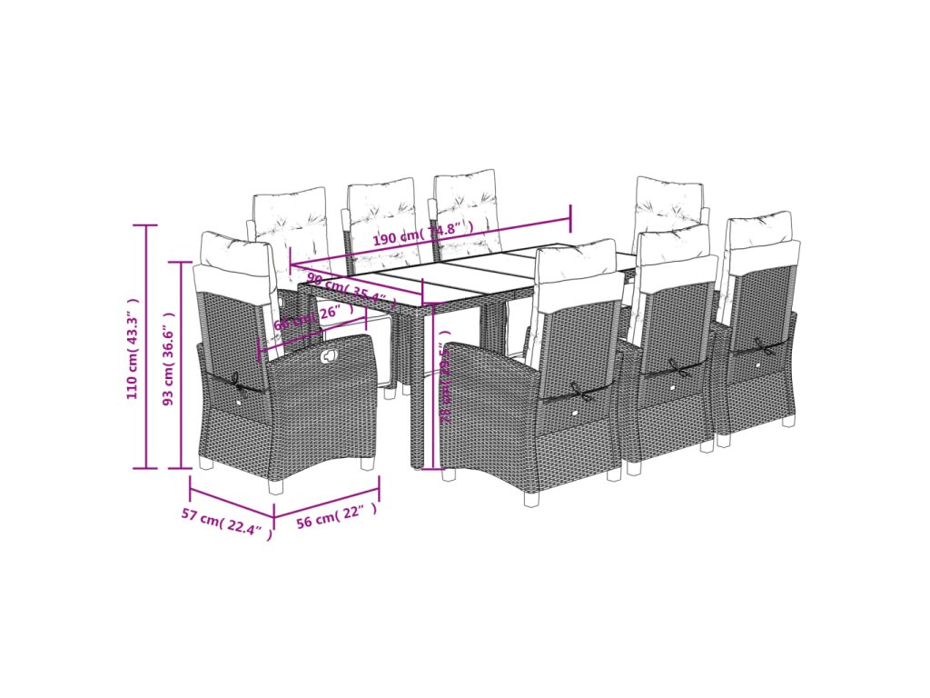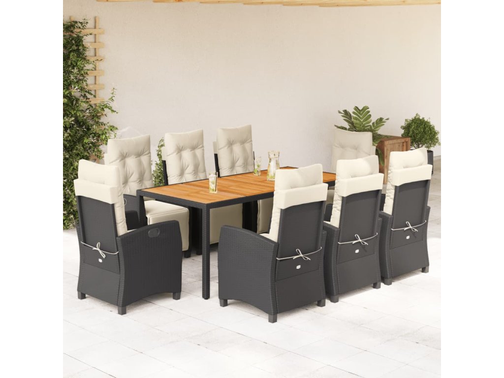 Multidom 9-dielna záhradná jedálenská sada s vankúšmi čierna polyratan