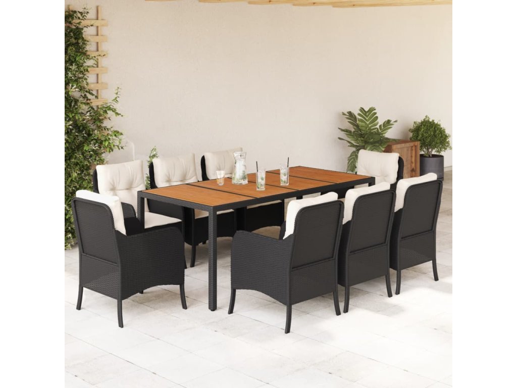 Multidom 9-dielna záhradná jedálenská sada s vankúšmi čierna polyratan