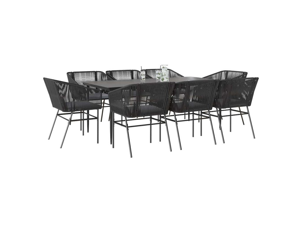 Multidom 9-dielna záhradná jedálenská súprava+podložky, čierna polyratan