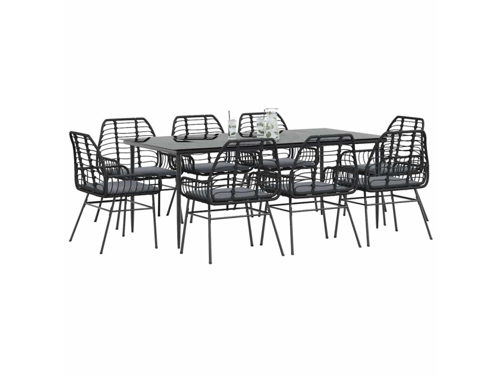 Multidom 9-dielna záhradná jedálenská súprava+podložky, čierna polyratan