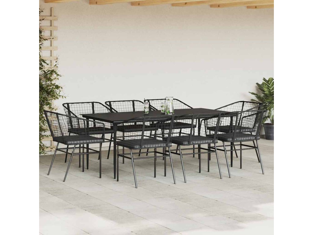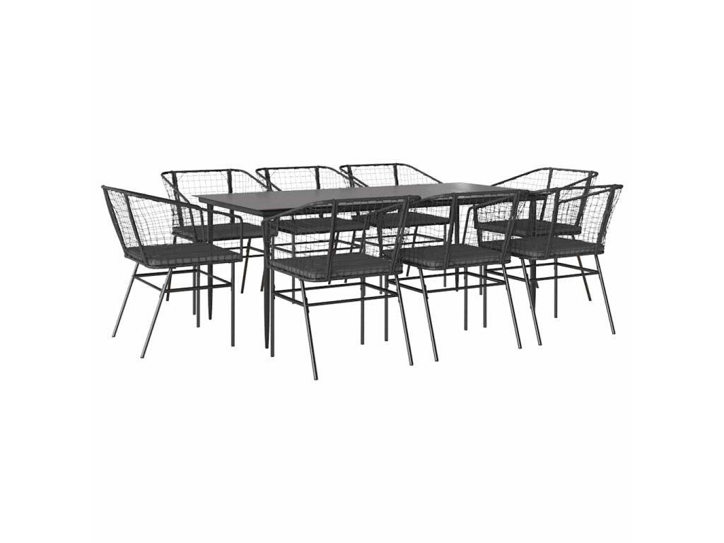 Multidom 9-dielna záhradná jedálenská súprava+podložky, čierna polyratan