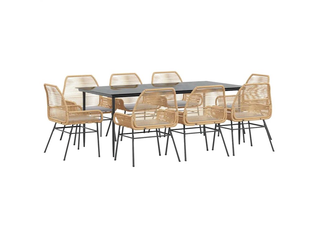 Multidom 9-dielna záhradná jedálenská súprava+podložky, hnedá, polyratan