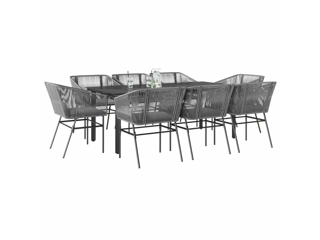 Multidom 9-dielna záhradná jedálenská súprava+podložky, sivá, polyratan