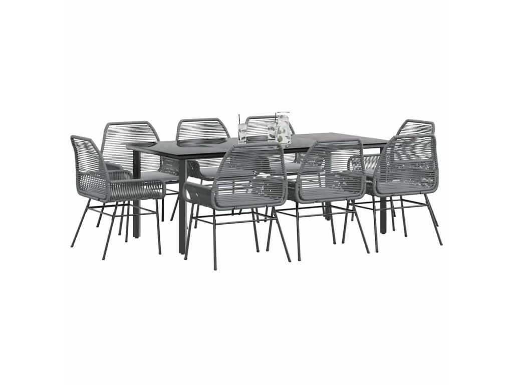 Multidom 9-dielna záhradná jedálenská súprava+podložky, sivá, polyratan