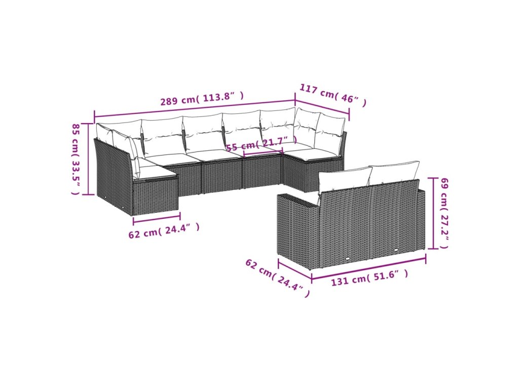 Multidom 9-dielna záhradná súprava pohoviek s vankúšmi čierna polyratan