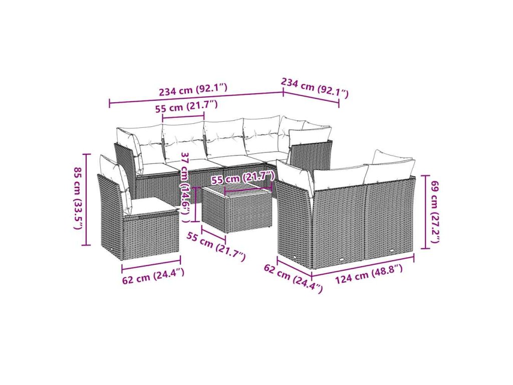 Multidom 9-dielna záhradná súprava pohoviek s vankúšmi sivá polyratanová