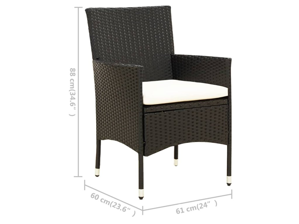Táto záhradná jedálenská súprava má oceľový rám s práškovým nástrekom, vďaka čomu sú stôl a stoličky stabilné a odolné. Vďaka PE ratanu, ktorý je vodeodolný a odolný voči poveternostným vplyvom sa sada vonkajšieho nábytku ľahko čistí. Hrubé odnímateľné sedáky zvyšujú komfort počas sedenia a ľahko sa čistia.