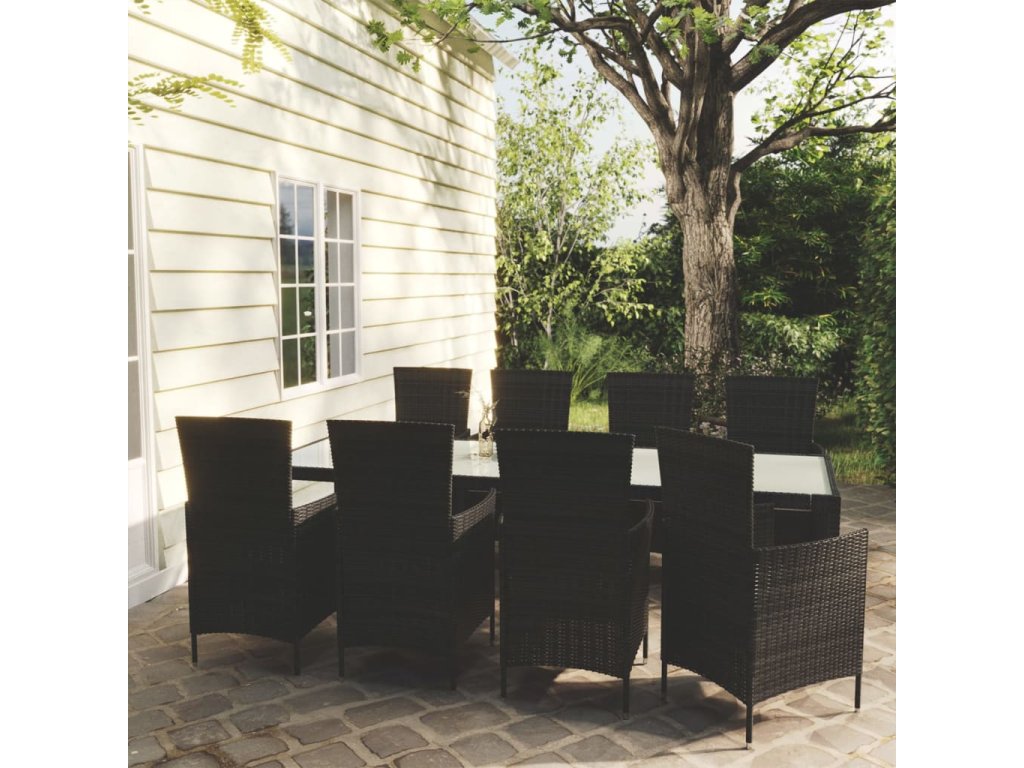 Multidom 9-dielny vonkajší jedálenský set so sedákmi polyratanový čierny