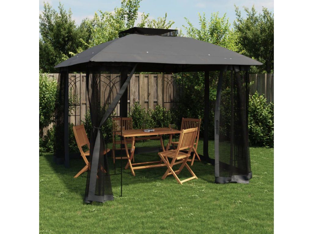 Multidom Altánok, dvojitá strecha sieťovinové steny, antracit 2,94x2,94m