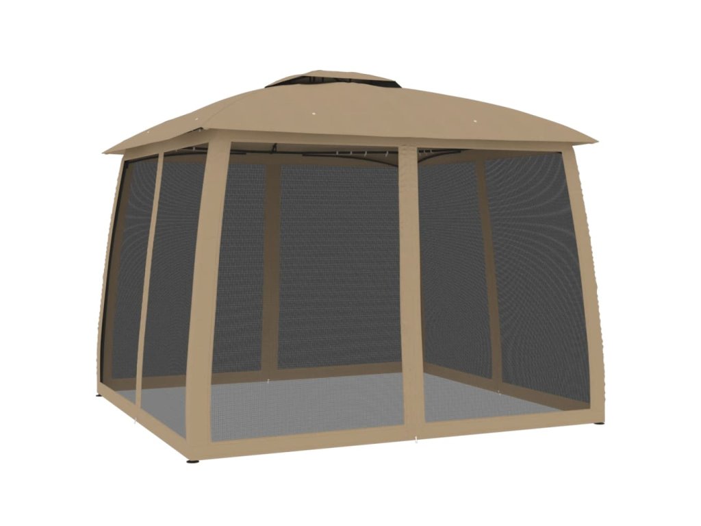 Multidom Altánok dvojitá strecha sieťovinové steny sivohnedý 2,93x2,93 m