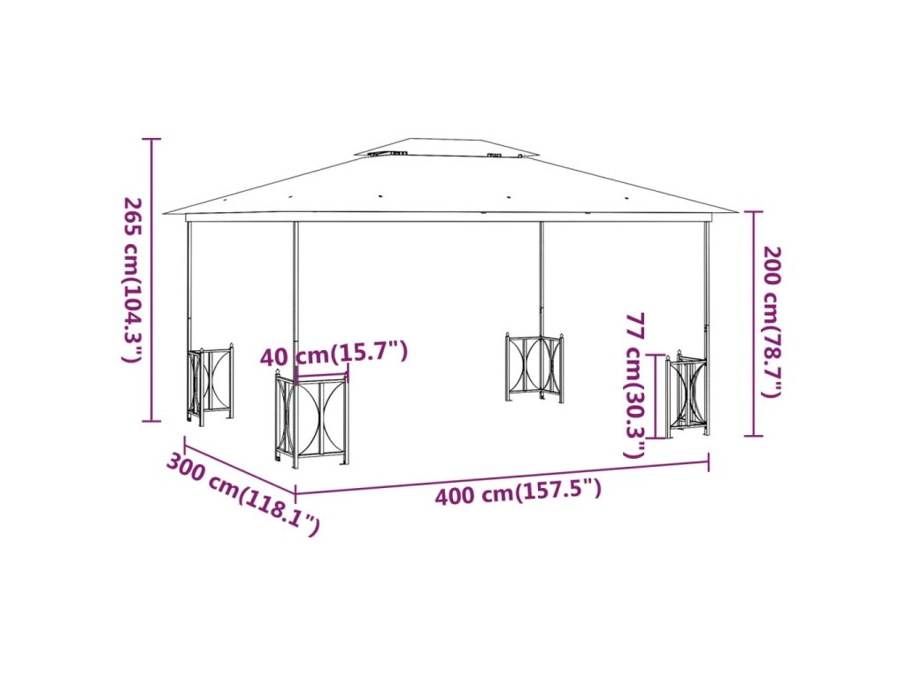 - Elegantný dizajn: Každá noha je dodávaná s dvoma dekoračnými panelmi, ktoré dodávajú altánku extra krásu.