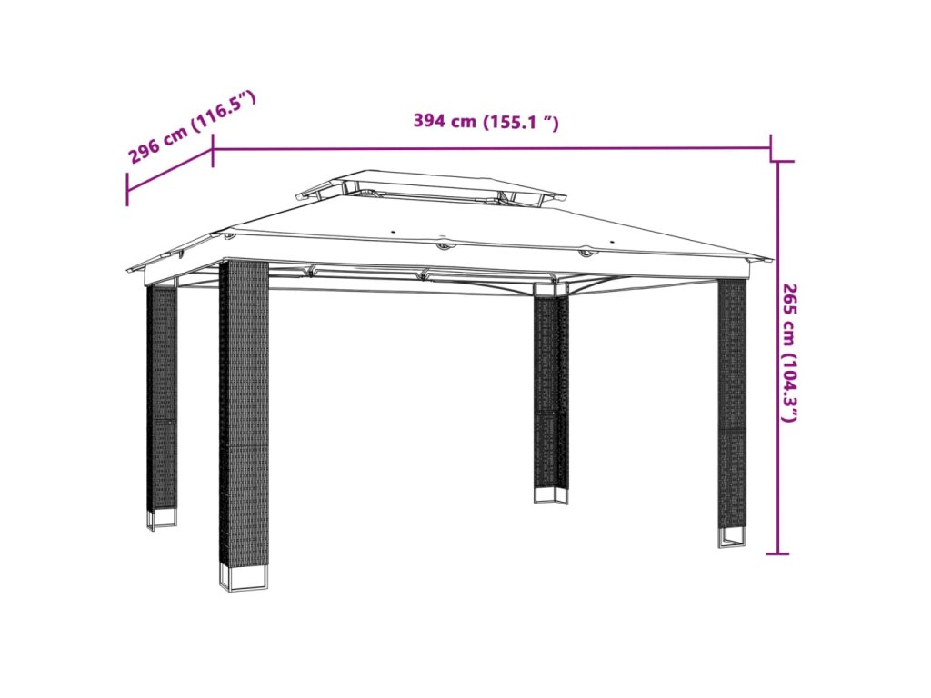 - 2-úrovňová vetraná strešná konštrukcia: altánok má elegantnú 2-vrstvovú konštrukciu, ktorá zabezpečuje skvelé vetranie a stabilitu, udržuje chlad počas slnečných dní a posilňuje odolnosť voči vetru počas nepriaznivého počasia.