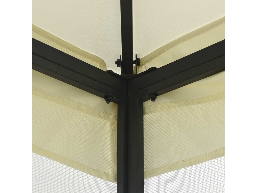 Tento praktický párty stan má oceľový rám a je veľmi pevný a trvácny. Ochranná strecha, ako aj odnímateľné závesy, sú vyrobené zo špeciálnej polyesterovej látky s vrstvou PA, ktorá je vhodná do exteriéru, pretože je odolná voči UV žiareniu. Súčasťou altánku sú aj sieťky, ktoré sú priehľadné, ľahké a vzdušné. Cez deň výborne prepúšťajú svetlo a v noci vás ochránia pred dotieravým hmyzom, a tak vám umožnia užiť si príjemný večer v záhrade. Tento krásny vonkajší prístrešok sa navyše dá rýchlo a ľahko postaviť.