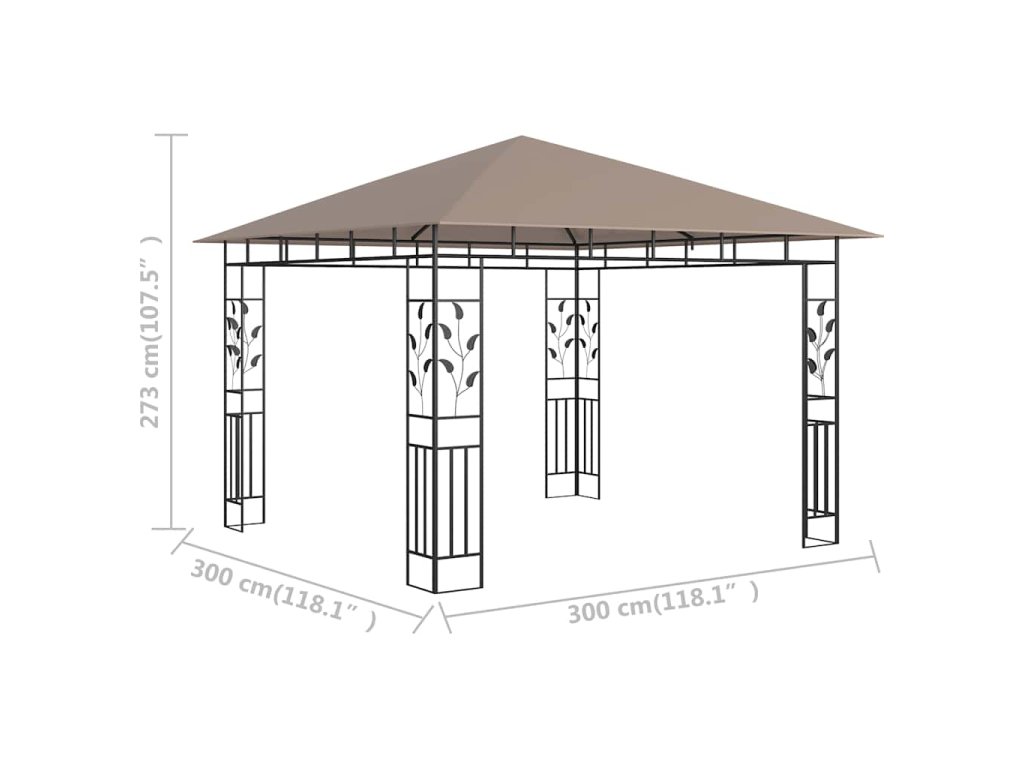 Rám má pevnú oceľovú konštrukciu, vďaka ktorej je odolný a stabilný. Látková strecha vás ochráni pred slnečným žiarením a pomôže vám tak užiť si lepší komfort pri vašich vonkajších aktivitách. Tento stan vybavený moskytiérami vás ochráni pred hmyzom a komármi. Svoj voľný čas v exteriéri si tak môžete užiť bez obmedzení. Tento altánok môžete zmontovať v krátkom čase.