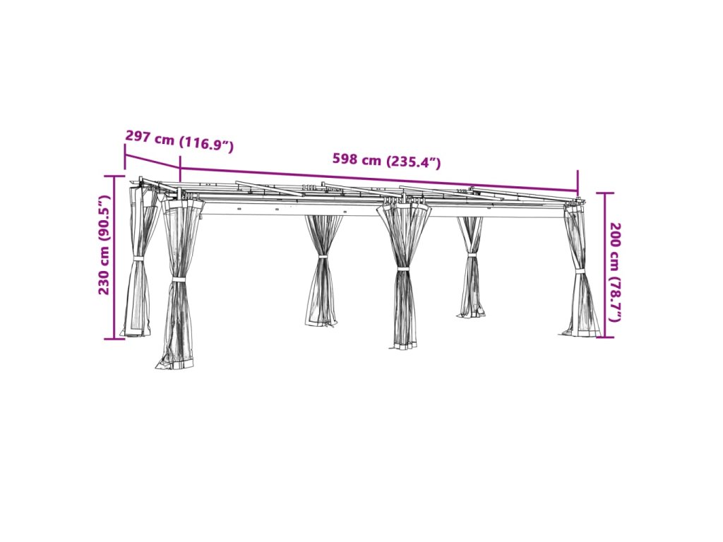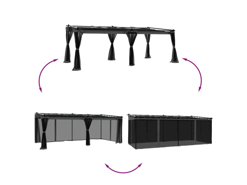 Multidom Altánok so sieťovinovými stenami antracit 6x3 m oceľ