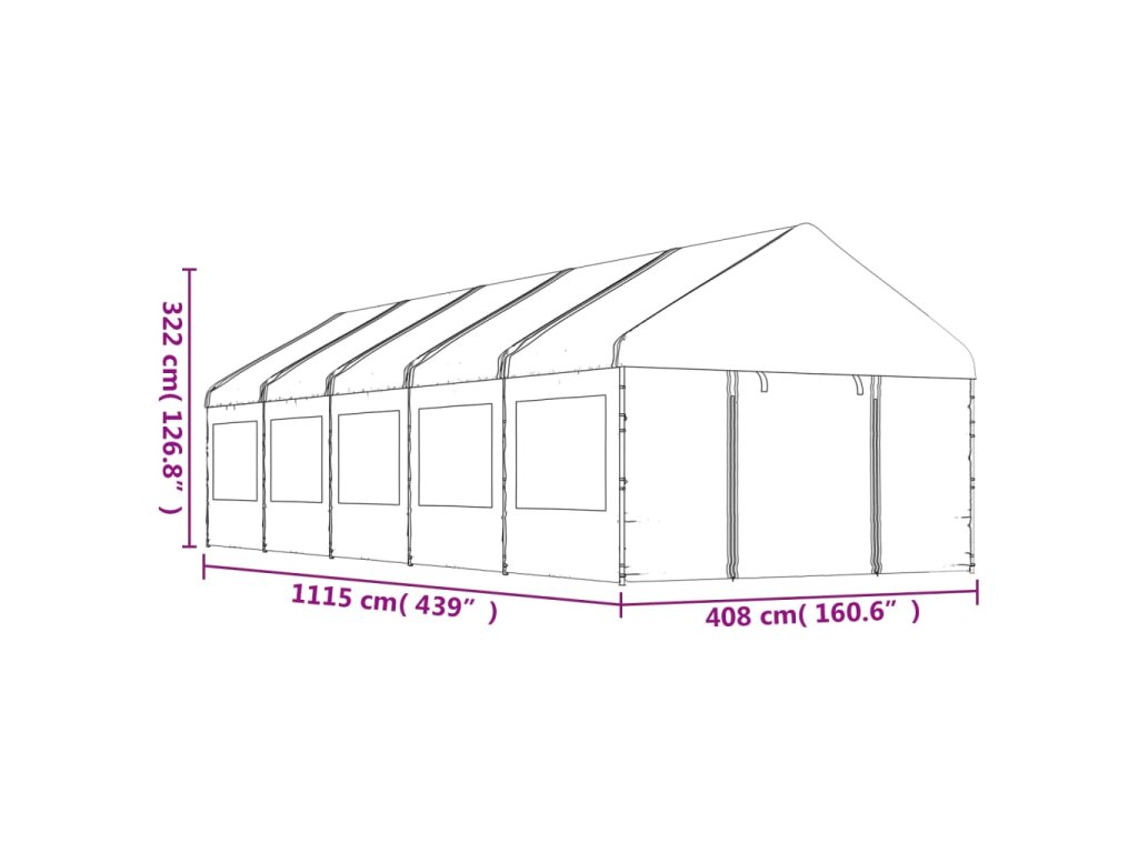 Multidom Altánok so strechou, biely 11,15x4,08x3,22 m, polyetylén