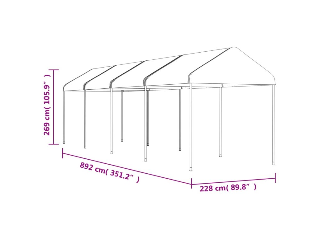 Multidom Altánok so strechou, biely 8,92x2,28x2,69 m, polyetylén