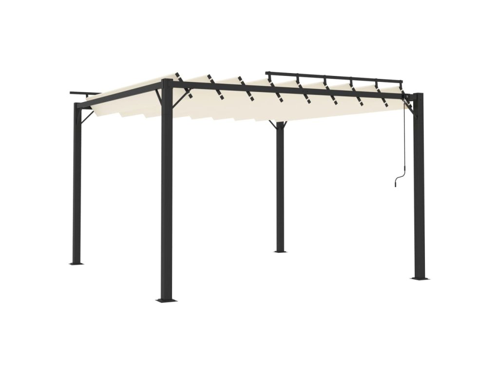 Tento altánok je vyrobený z tkaniny s PA povrchovou úpravou, ktorá odpudzuje vodu a nečistoty. Silný hliníkový rám robí altánok pevným a veľmi odolným. Tento altánok je vybavený nastaviteľnou strechou s žalúziami. Rolety môžete jednoducho otáčať a nastaviť do ideálnej polohy jednoduchým zatrasením rukoväte. Otvorte ich, keď si chcete vychutnať slnko, a znova ich zatvorte, ak si chcete vytvoriť tieň alebo sa ochrániť pred dažďom. Tento altánok je perfektnou voľbou pre vaše outdoorové aktivity.
