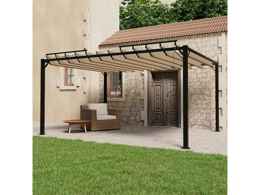 Multidom Altánok so žalúziovou strechou 3x4 m sivohnedý látka a hliník