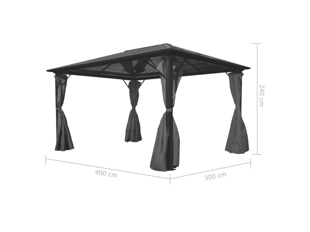 Multidom Altánok so závesmi, antracitový, hliníkový 400x300 cm