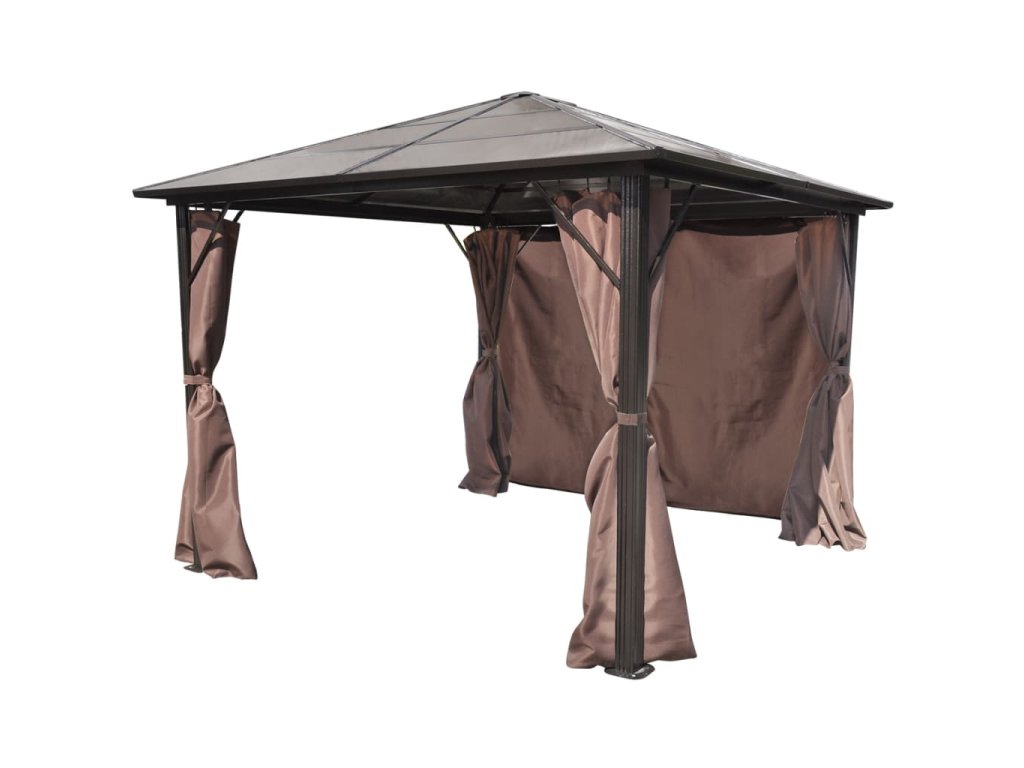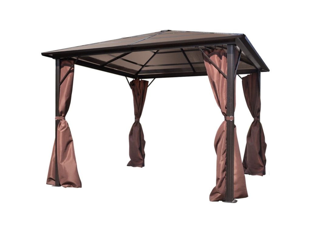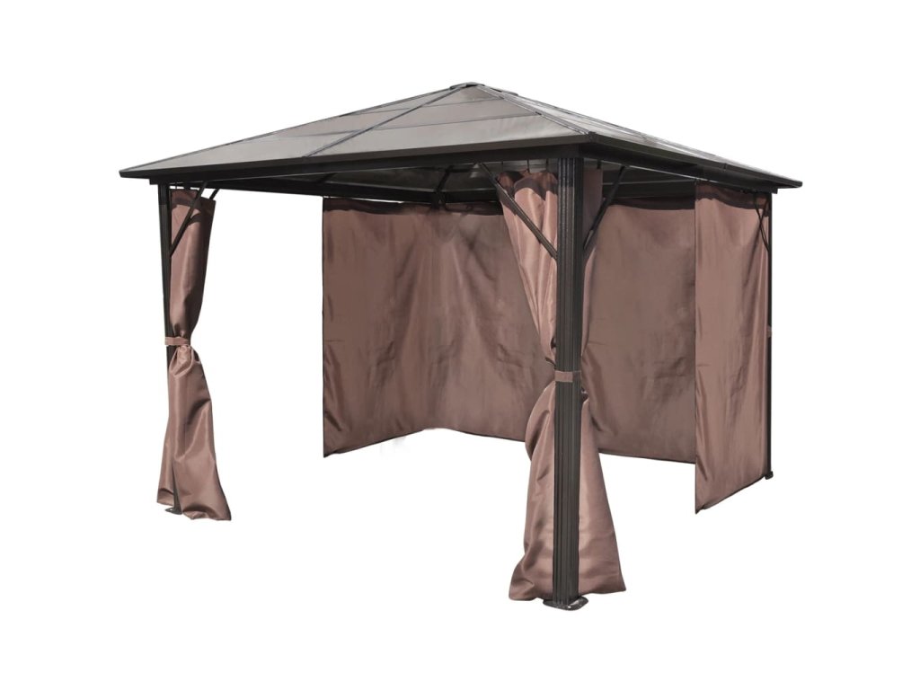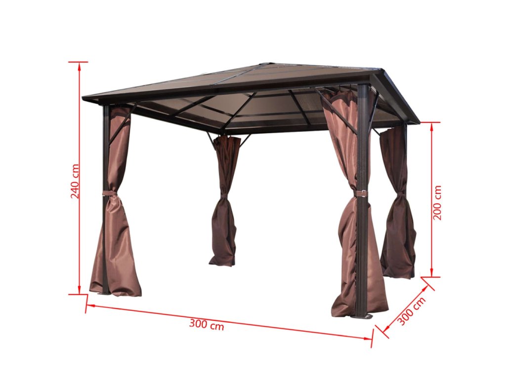 Multidom Altánok so závesmi, hnedý, hliníkový 300 x 300 cm