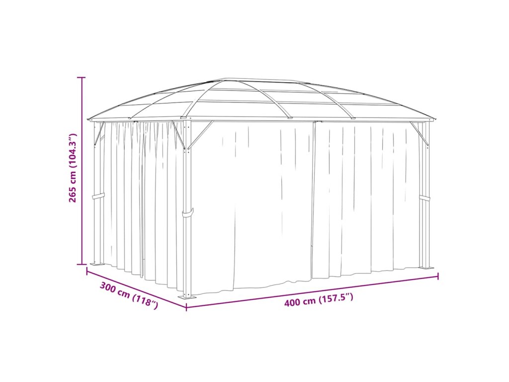 Multidom Altánok so závesmi antracitový 400x300x265 cm
