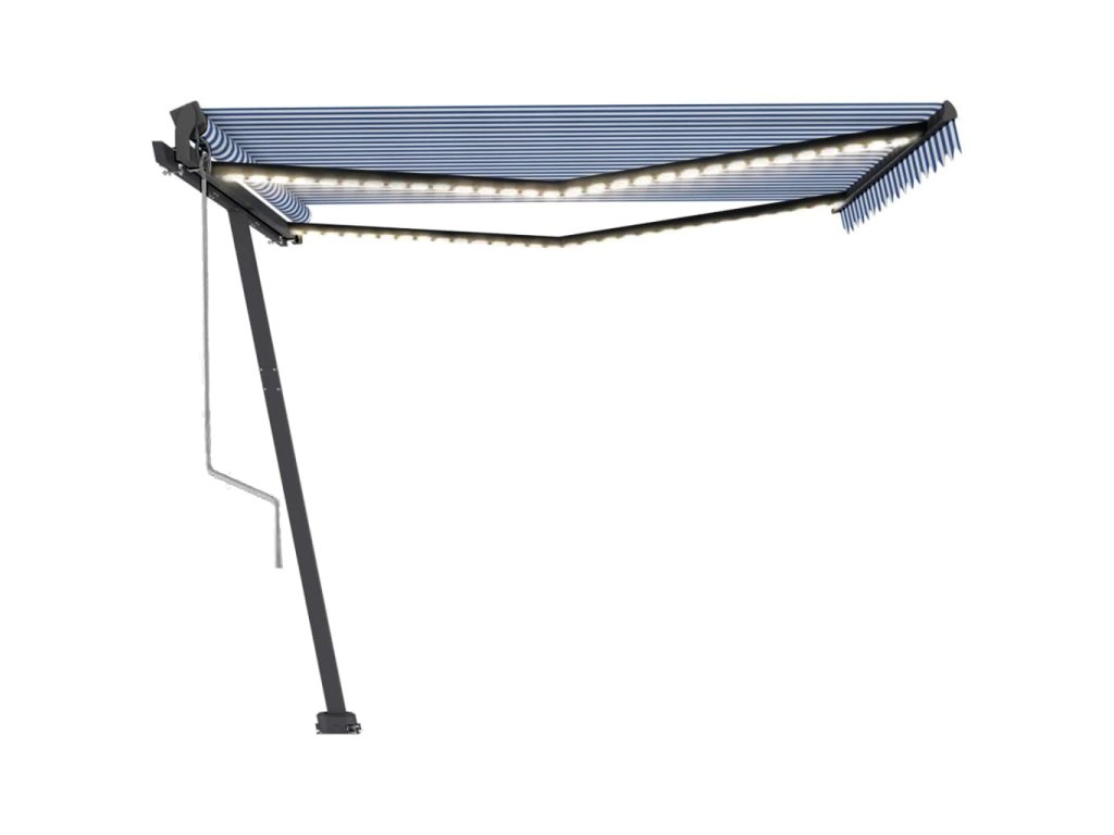 Táto vonkajšia markíza pozostáva z hliníkového rámu s práškovou povrchovou úpravou, ktorý je odolný voči hrdzi, vďaka čomu je ľahká a zároveň pevná. Látka voľne stojacej markízy je vyrobená z polyesteru s vysokou hustotou s vrstvou PU, a preto je vodovzdorná a odolná voči UV žiareniu. Sklon a výšku markízy si môžete podľa potreby nastaviť. Robustná základňa sa dá otáčať o 360 stupňov, aby ste si ju mohli vždy prispôsobiť podľa svojich predstáv. Automatická vysúvacia markíza sa dá jednoducho vysúvať a zaťahovať pomocou diaľkového ovládania, ktoré je súčasťou balenia. Terasová markíza sa dá bez problémov ovládať aj pomocou dlhej ručnej kľuky. Okrem toho je vybavená aj senzorom vetra, ktorý markízu automaticky zatiahne počas veterných dní. LED svetlá vám v noci poskytnú energeticky úsporné osvetlenie.