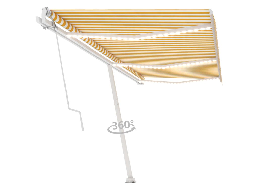 Multidom Automatická markíza s LED a senzorom vetra 600x300cm žlto-biela