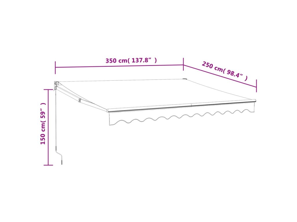 - Odolný materiál: Rám markízy je vyrobený z hliníka s práškovým nástrekom, ktorý je robustný a odolný. Látka s PU povrchovou úpravou je UV odolná. Vašu rodinu alebo hostí ochráni pred UV lúčmi a oslňujúcim slnečným žiarením.