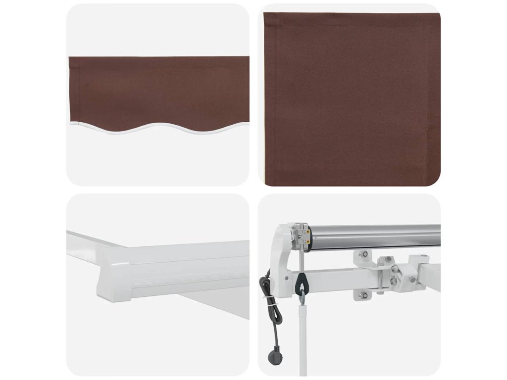 - Odolný materiál: Rám markízy je vyrobený z hliníka s práškovým nástrekom, ktorý je robustný a odolný. Látka s PU povrchovou úpravou je UV odolná. Vašu rodinu alebo hostí ochráni pred UV lúčmi a oslňujúcim slnečným žiarením.