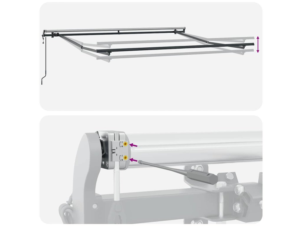 - Odolný materiál: Rám markízy je vyrobený z hliníka s práškovým nástrekom, ktorý je robustný a odolný. Látka s PU povrchovou úpravou je UV odolná. Vašu rodinu alebo hostí ochráni pred UV lúčmi a oslňujúcim slnečným žiarením.