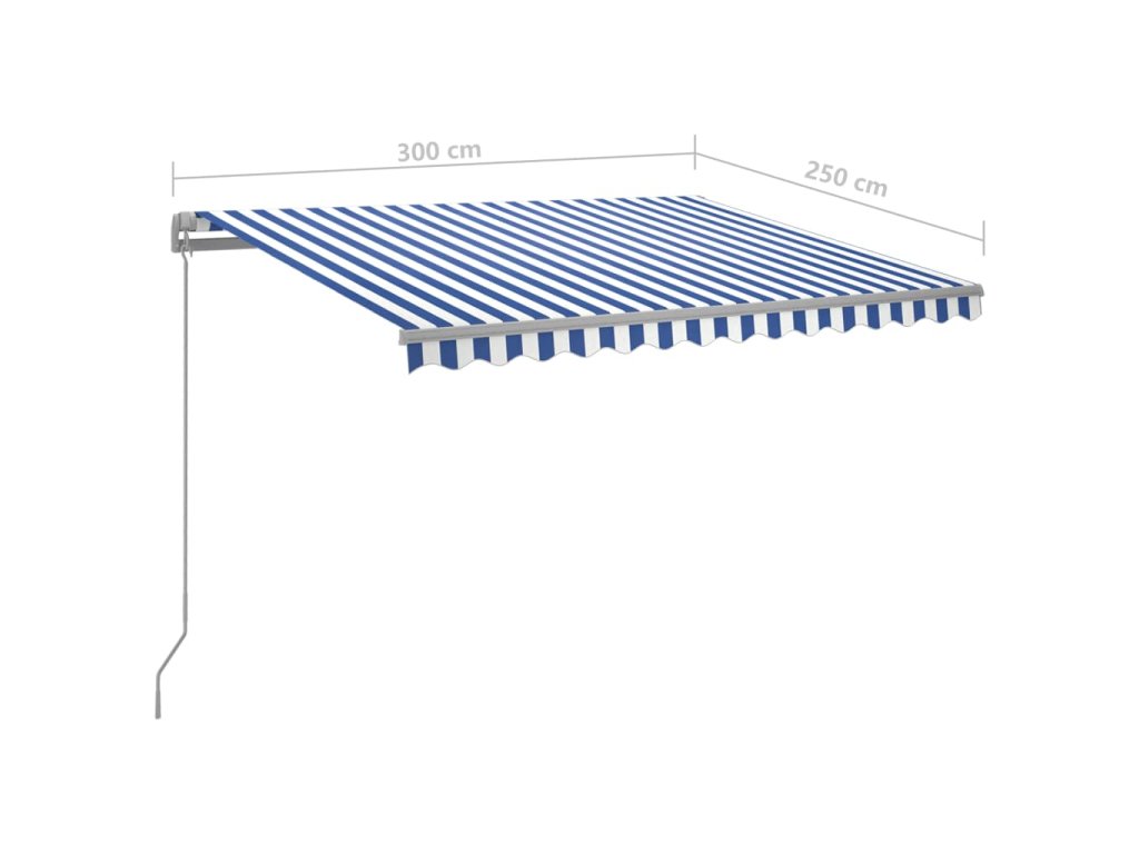 Multidom Automaticky zaťahovacia markíza so stĺpikmi 3x2,5 m modro-biela
