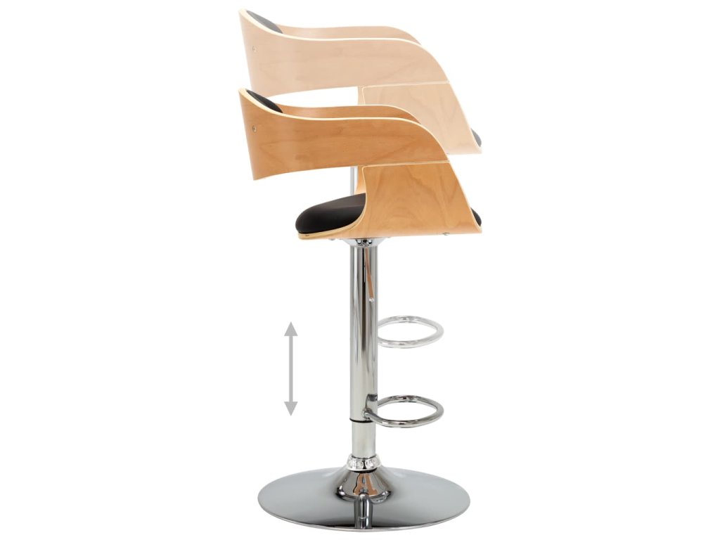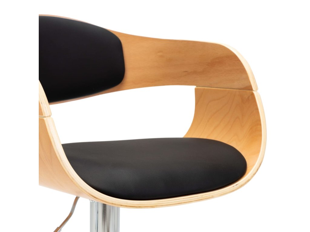 Stolička je čalúnená ľahko čistiteľnou umelou kožou, aby poskytovala optimálne pohodlie. Ohnutý drevený rám dodáva stoličke jedinečnú krásu a štýl. Chrómovaná kovová základňa poskytuje vysokú pevnosť, zatiaľ čo vstavaná opierka nôh poskytuje dodatočné potešenie zo sedenia. Vďaka ergonomickému dizajnu sa na tejto stoličke veľmi pohodlne sedí dlhé hodiny. Navyše, vďaka mechanizmu plynového piestu sa dá táto barová stolička výškovo nastavovať a bude perfektným doplnkom akéhokoľvek funkčného baru alebo jedálenského priestoru.