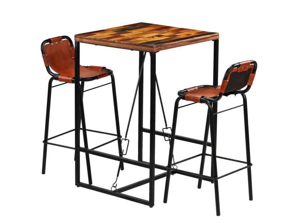 Multidom Barová súprava, 3 kusy, recyklovaný masív a pravá kozia koža