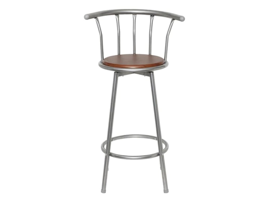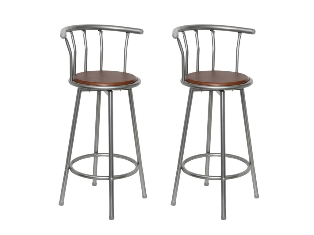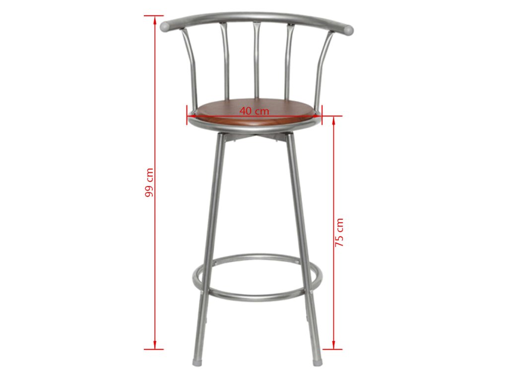 Táto súprava moderných barových stoličiek vyrobených z MDF a ocele má štýlový dizajn a bude sa perfektne hodiť k barovému pultu či do obývačky. Sedadlo barovej stoličky sa dá otáčať v rozsahu 360 stupňov a je vyrobené z MDF hnedej farby. Obidve stoličky majú opierku na nohy, aby sa vám sedelo pohodlne po celý večer. Barové stoličky sa dajú ľahko poskladať a v prípade potreby ich môžete očistiť.