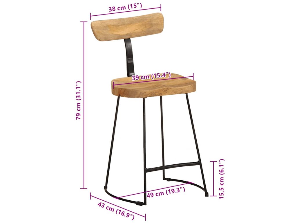 Multidom Barové stoličky 2 ks 49x43x79 cm mangový masív