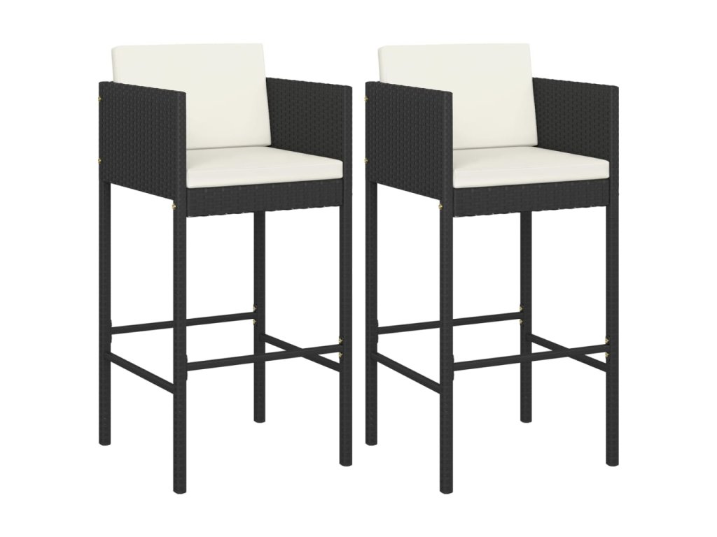 Multidom Barové stoličky 2 ks s podložkami čierne polyratanové