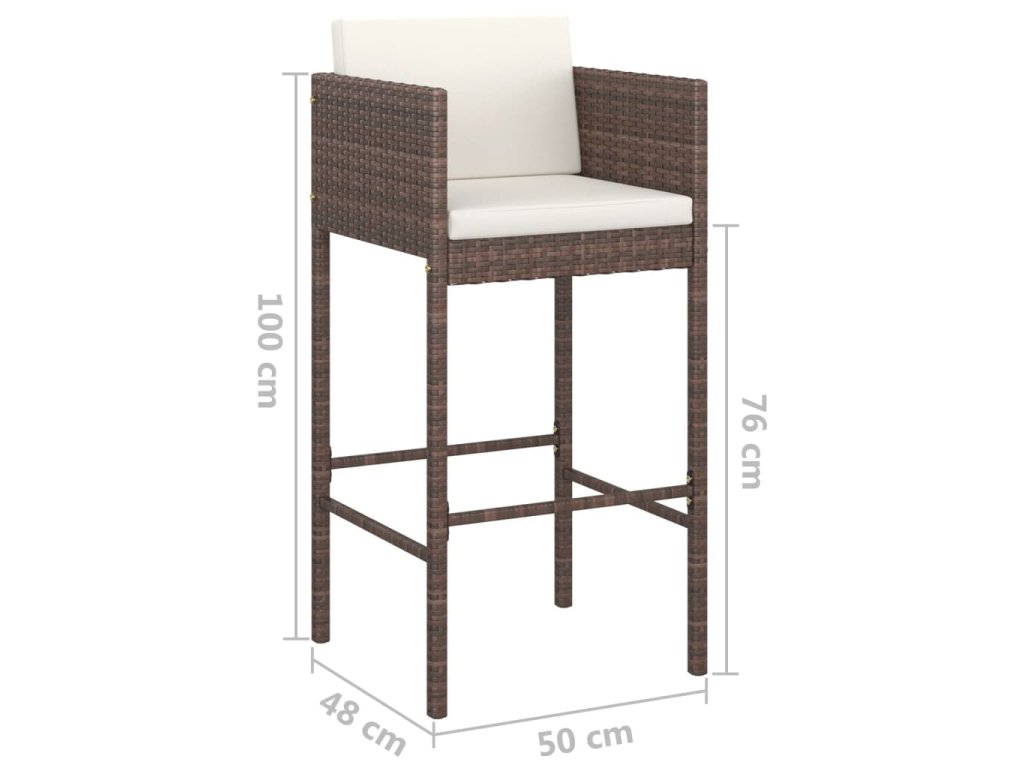 Multidom Barové stoličky 2 ks s podložkami hnedé polyratanové