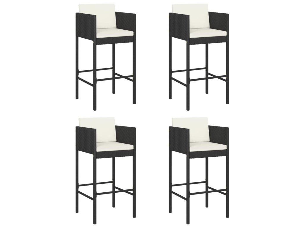 Multidom Barové stoličky 4 ks s podložkami čierne polyratanové