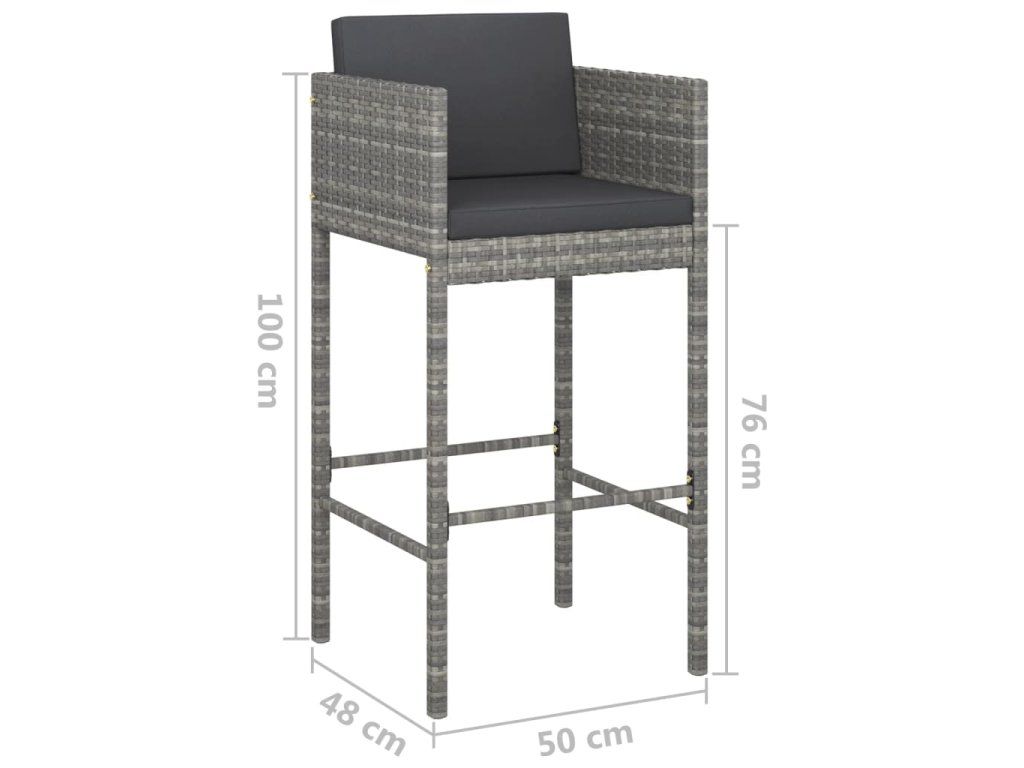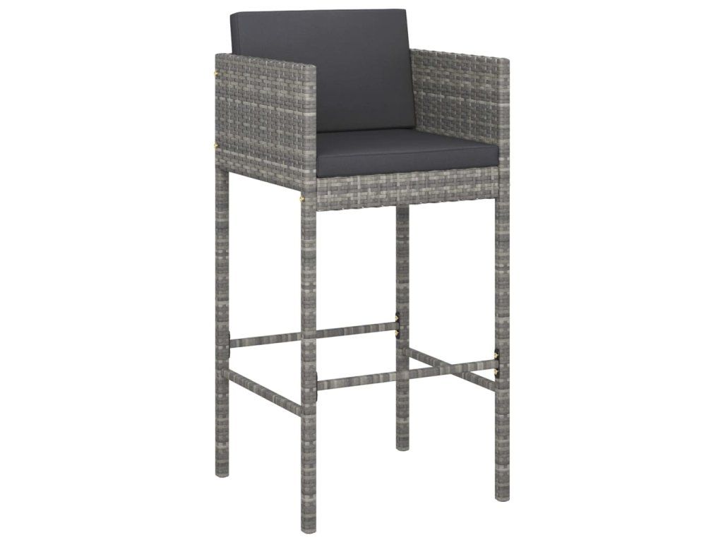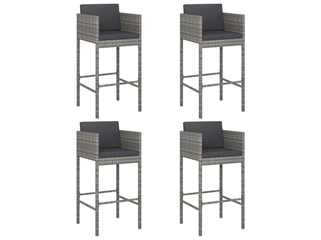 Multidom Barové stoličky 4 ks s podložkami sivé polyratanové
