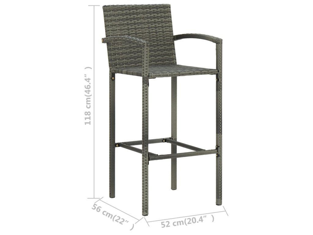 Záhradná stolička má oceľový rám s práškovou povrchovou úpravou, vďaka čomu je naozaj stabilná a pevná, a tak vám celé roky bude slúžiť ako ideálne miesto na oddychovanie. Stolička je vyrobená z PE ratanu, ktorý je trvácny a odolný voči UV žiareniu a poveternostným vplyvom, a preto je ako stvorený na každodenné používanie v exteriéri. Dá sa ľahko očistiť navlhčenou handričkou. Zabudovaná opierka na nohy zvyšuje pohodlie pri sedení. Barová stolička má ľahkú ratanovú konštrukciu, takže sa dá jednoducho premiestniť a prispôsobiť akémukoľvek prostrediu.