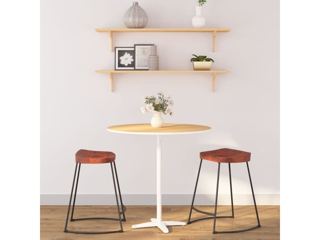 - Odolný materiál: Vintage drevená stolička je vyrobená z masívneho mangovníkového dreva, čo je tvrdé drevo s bohatou štruktúrou. Surové mangovníkové drevo nielenže unesie aj vyššiu hmotnosť, ale odoláva aj opotrebovaniu časom. Preto je táto barová stolička stabilná, odolná a pútavá.