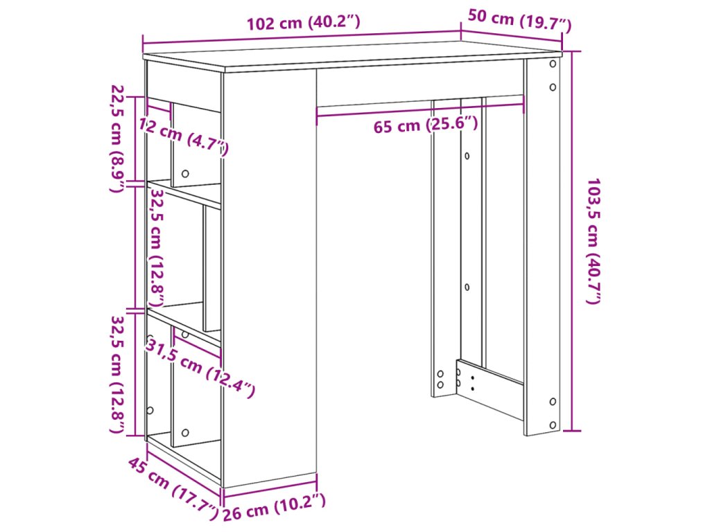 Multidom Barový stôl s policami dub artisian 102x50x103,5cm kompoz.drevo