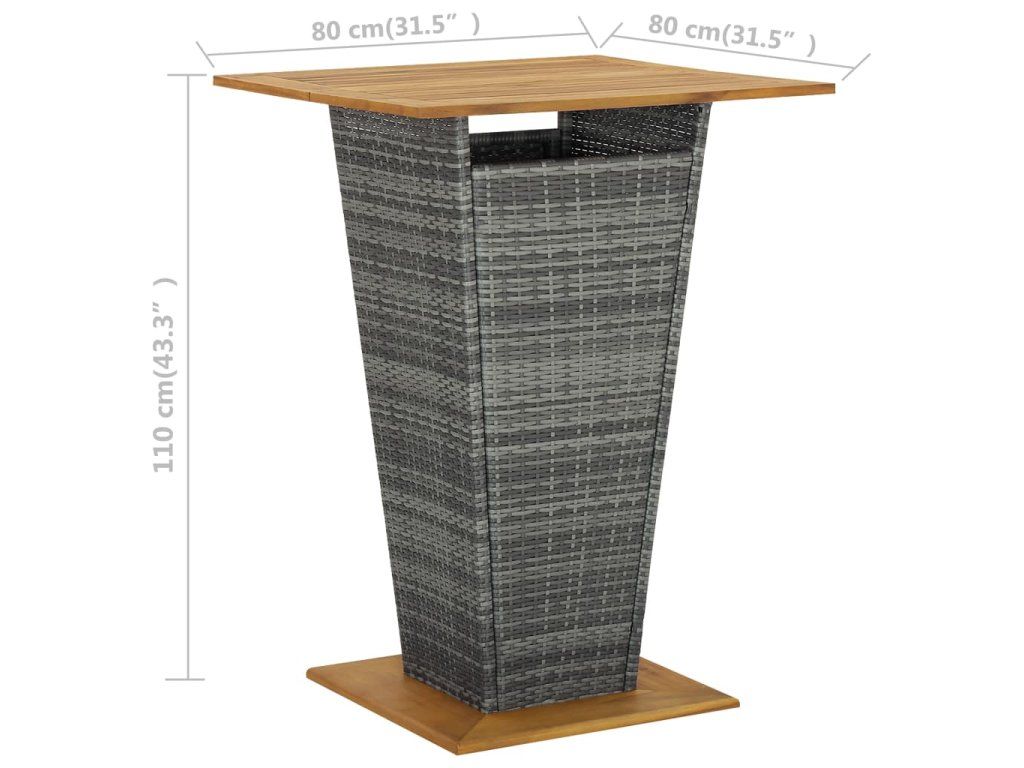 Multidom Barový stôl sivý 80x80x110 cm polyratan a akáciový masív